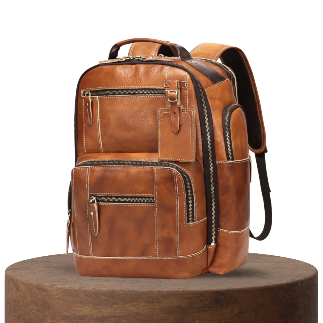 This leather backpack offers a stylish, professional look for both work and travel. The high-quality leather gives it a timeless appeal. Perfect for commuting or short trips, it combines sophistication with practicality.