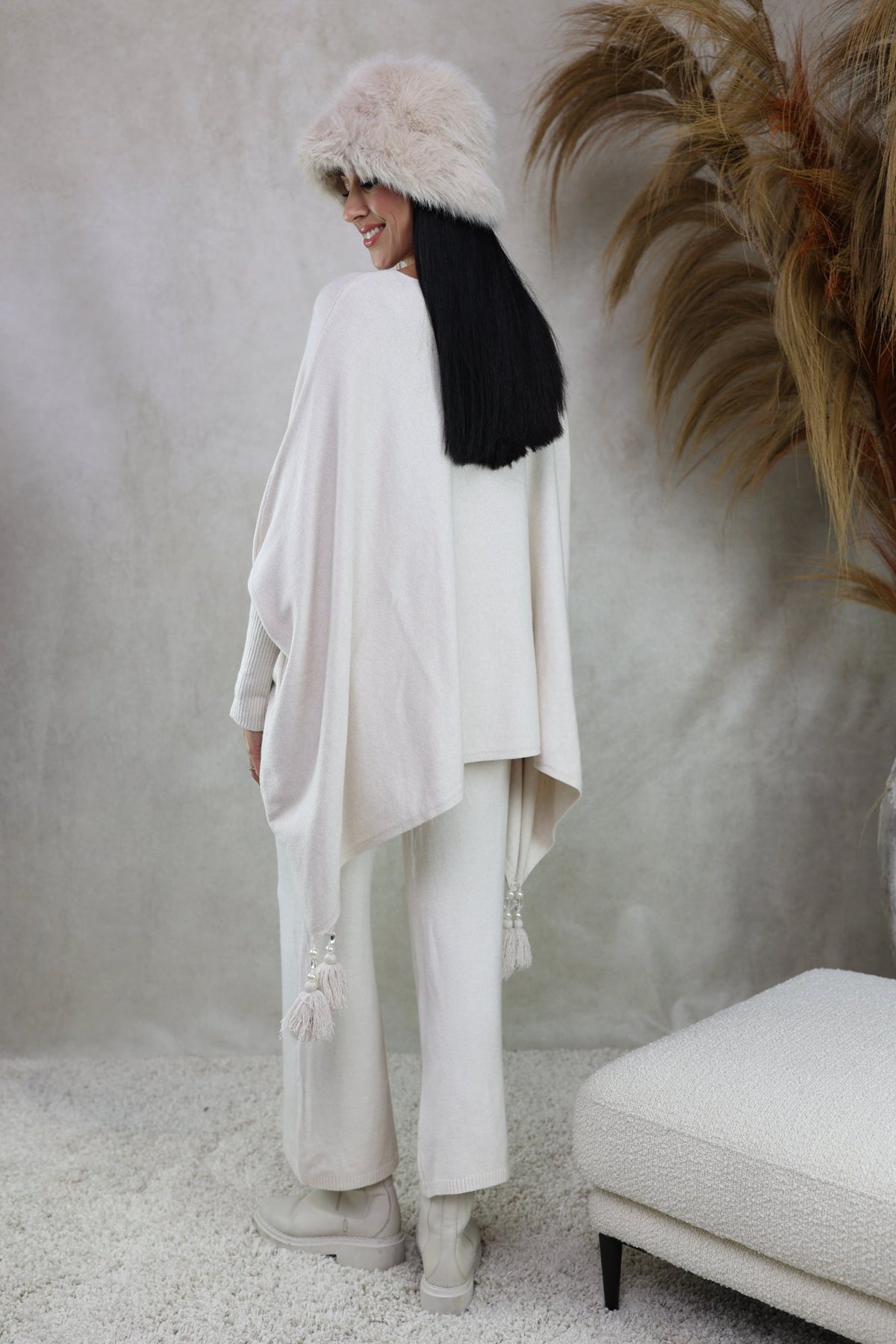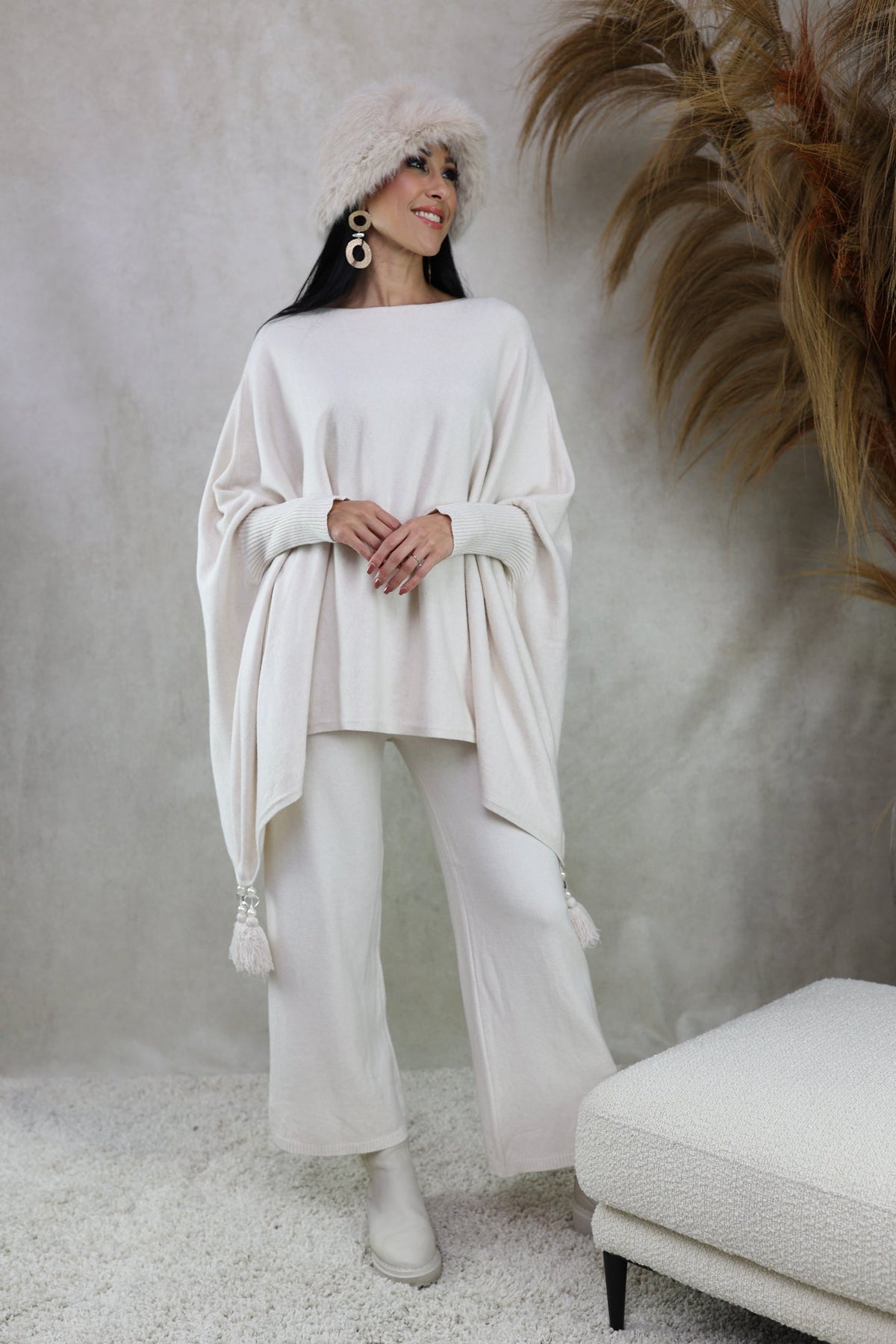 Scarlett drapes like a cape, moves like your favorite sweater, and adds a touch of drama with swishy tassels at each point. It’s the throw-on piece that makes every outfit look instantly polished—at brunch, on the school run, or for a cozy night out.